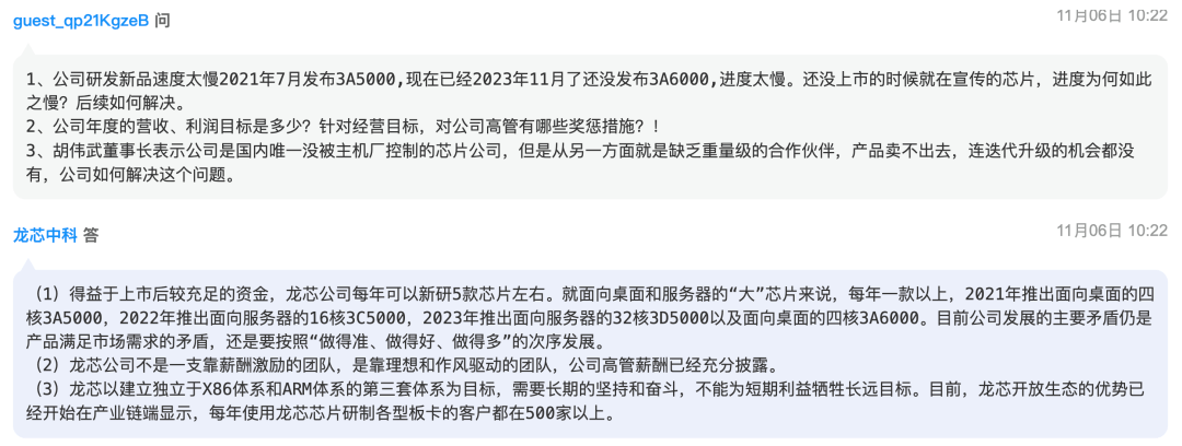 龙芯中科在业绩说明会上透露,龙芯 3A6000 将于 11 月底正式发布(初步定于 11 月 28 日),十几家整机 / ODM 企业将发布其整机产品。