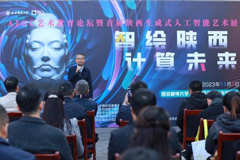 首届陕西生成式人工智能艺术展11月8日在西安邮电大学图书馆开展。中国好创意大赛创始人及组委会秘书长、中国电子视像行业协会数字影像创意委员会秘书长谢清风,北京师范大学二级教授,教育部虚拟现实应用工程研究中心主任、中国虚拟现实技术与产业创新平台理事长周明全,西安美术学院二级教授、博士生导师黄向东等30余位专家,西安交通大学、西北工业大学、西北大学、陕西师范大学和陕西科技大学等省外内多所高校参与本次活动。