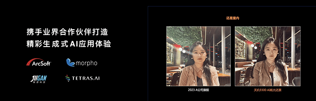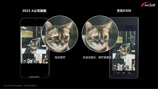 联发科还携手业界合同伙伴打造精彩的生成式AI应用体验。虹软的生成式AI超级分辨率技术基于天玑9300 APU 边缘计算能力,相比前代,性能可提升30%。在25倍放大的拍摄时,利用生成式AI超级分辨率技术,可以拍出细节更真实的图像效果。