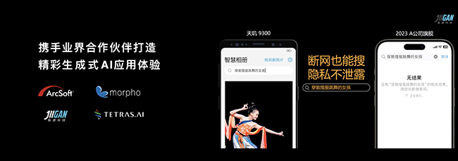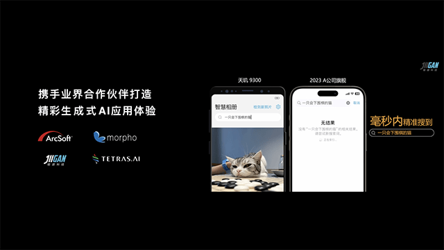 极感科技的生成式AI语意搜索技术也基于天玑9300 APU边缘计算能力,对比前代,性能可提升260%。比如在手机的相册中搜索照片,描述照片的内容即可在毫秒内精准搜到对应的照片。而且在断网状态下也能搜索,隐私也不会泄露。