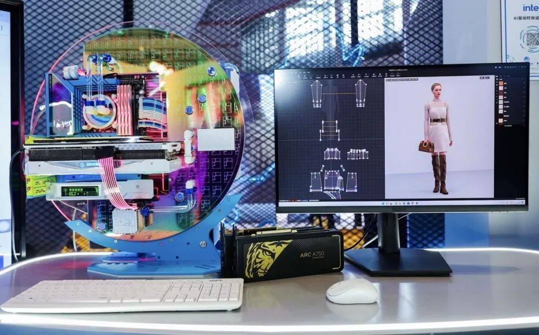 在英特尔AIGC展台,我们就看到一个Style 3D换装的有趣应用,可以看到换装过程非常流畅,支持这个应用的便是一台装载了锐炫A750的PC。