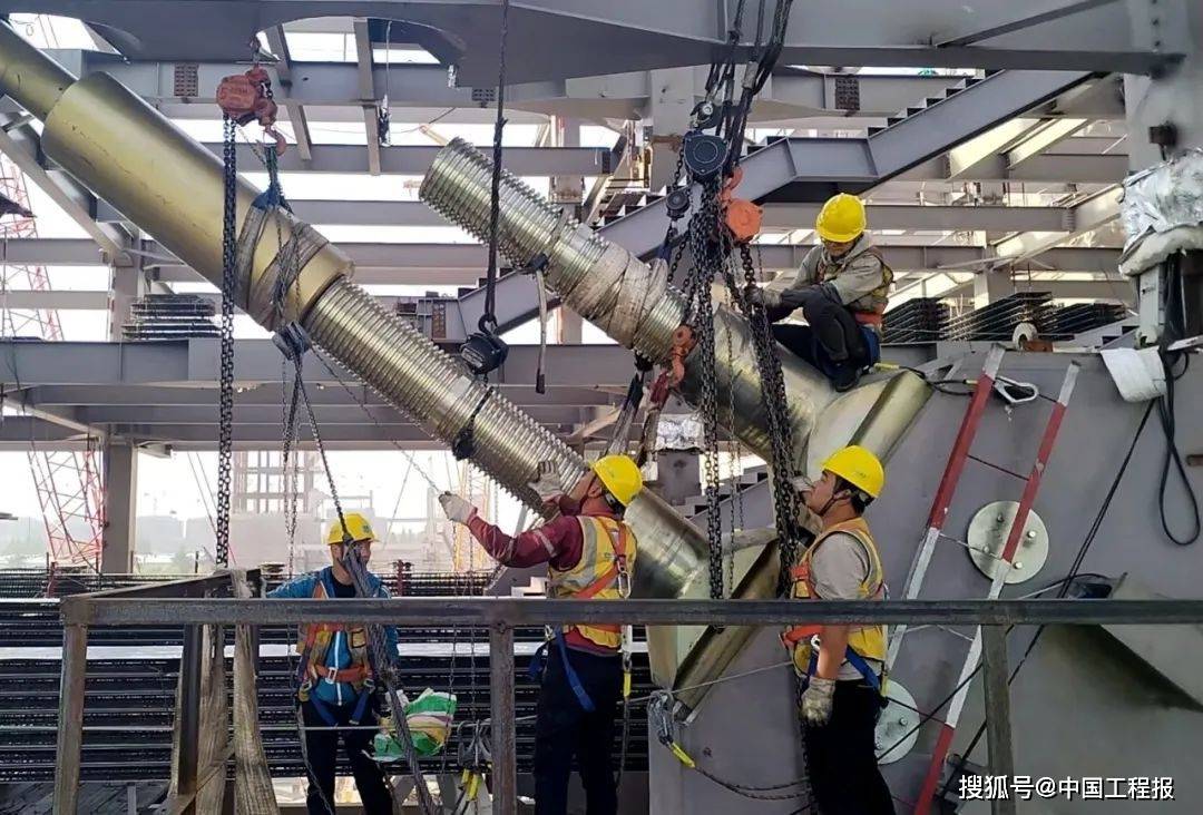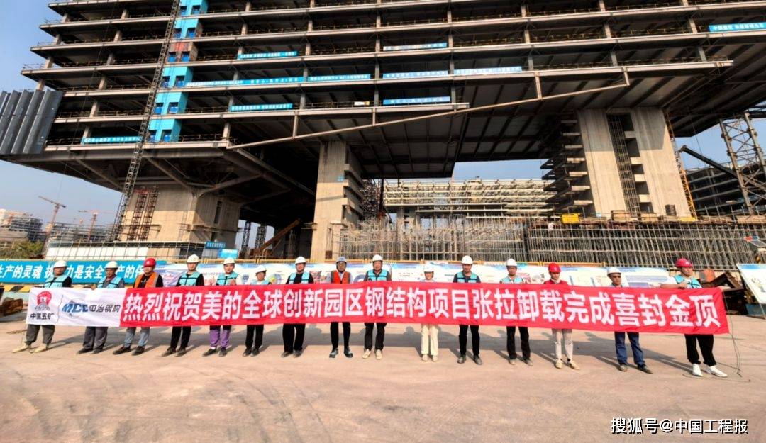近日,中冶钢构华东分公司上海美的全球创新园区项目完成所有PE索体的张拉,顺利封顶。其中最大索体公称直径达214毫米,也是目前国内民建领域应用到的最大直径索体。