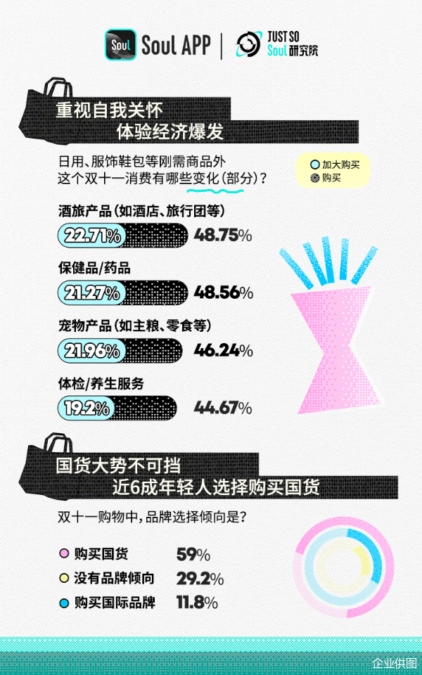 报告显示,在一些报道中被贴上“反向消费”标签的年轻人,积极拥抱双十一,近9成参与此次大促,此外,超3成年轻人的消费预算超去年;此外,重视自我关怀的新世代带来体验经济爆发,酒店、旅行团、以及体检、养生服务等被更多年轻人接受。