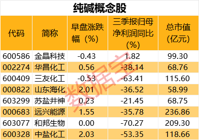 业绩上来看,前三季度除金晶科技外,纯碱板块上市公司普遍净利润有所下滑,和邦生物、三友化工、中盐化工归母净利润同比下降50%以上。第三季度单季来看,金晶科技、华昌化工第三季度盈利回暖,归母净利润同比分别增长224.39%、131.2%。(数据宝 刘俊伶)