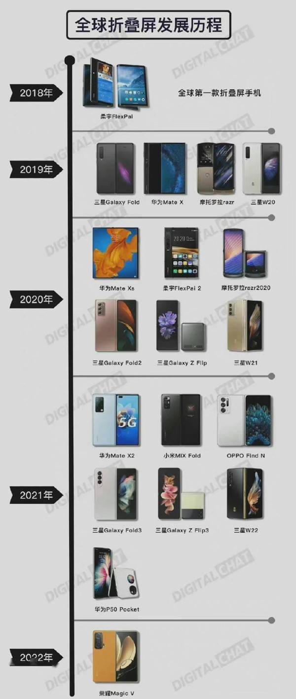 其实,荣耀并不是第一批推出折叠屏产品的手机厂商。早在2018年,中国科技公司柔宇就推出了全球第一款折叠屏手机。紧接着,三星、华为、摩托罗拉等科技大佬纷纷跟进,进一步推动了折叠屏手机量产。