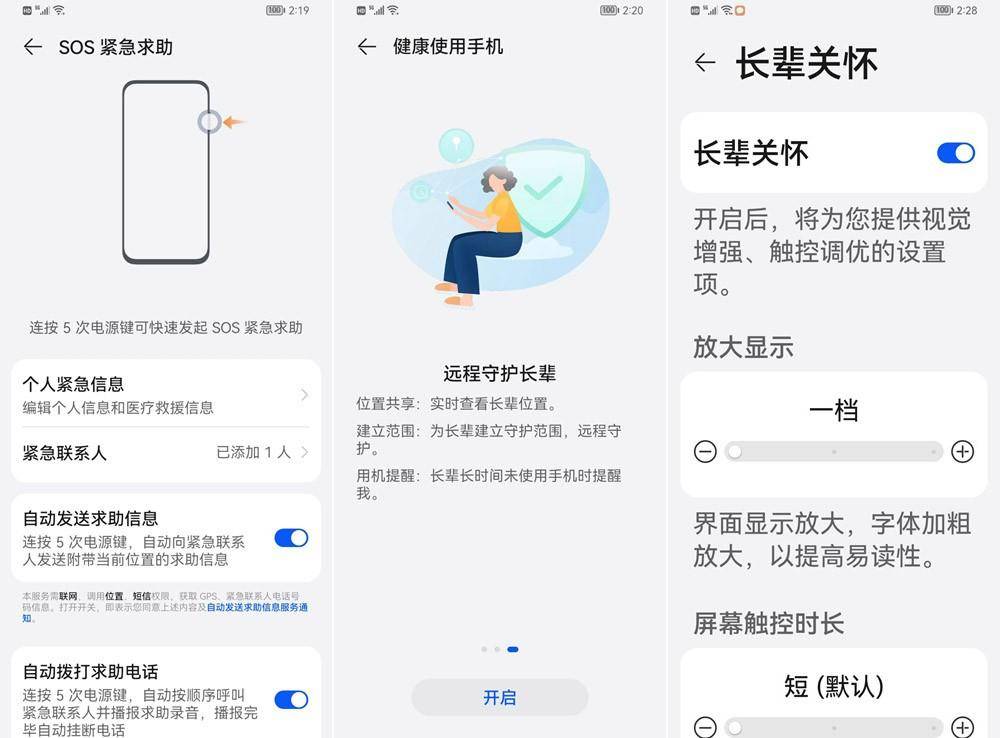 Hi畅享60s 5G还非常贴心的提供了家人远程守护功能,特别适合子女在外地工作,老人独自留在老家的情况。因为启用这项功能后,子女可以随时通过位置共享信息,实时的掌握父母的当前位置,对于上点岁数的老年人来说,可以一定程度上避免迷路或走丢的功能,并且子女还可以给父母建立一个安全守护范围,如果父母离开设定范围区域,子女就能第一时间收到通知提醒。与此同时,Hi畅享60s 5G还可以预设紧急联系人,当机主出现紧急状况时,无需解锁手机直接连按5次电源键,就能给预设的家人朋友发出SOS紧急求助信号。相信有了以上这些守护功能,子女也能更加安心的在异地工作了。