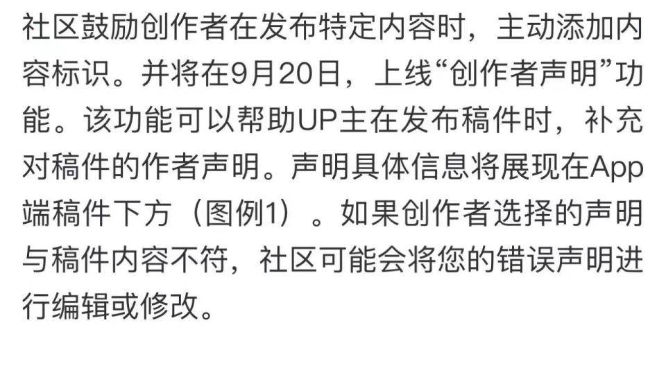 图为某视频发布平台“主动添加内容标识”公告截图。