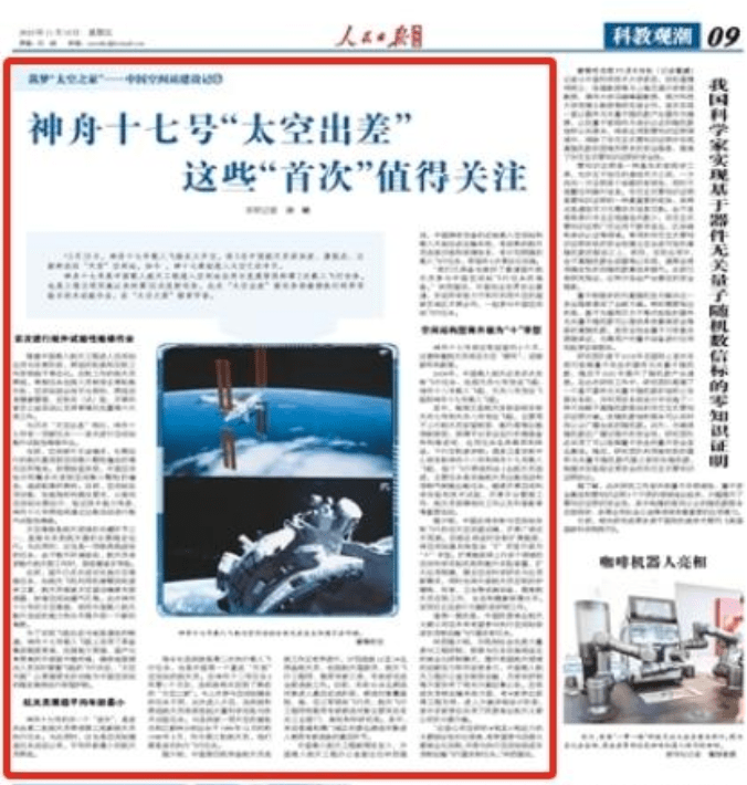 这不,中国《人民日报海外版 》再次披露了关于神舟十七号“太空出差”,这些“首次”值得关注的消息。