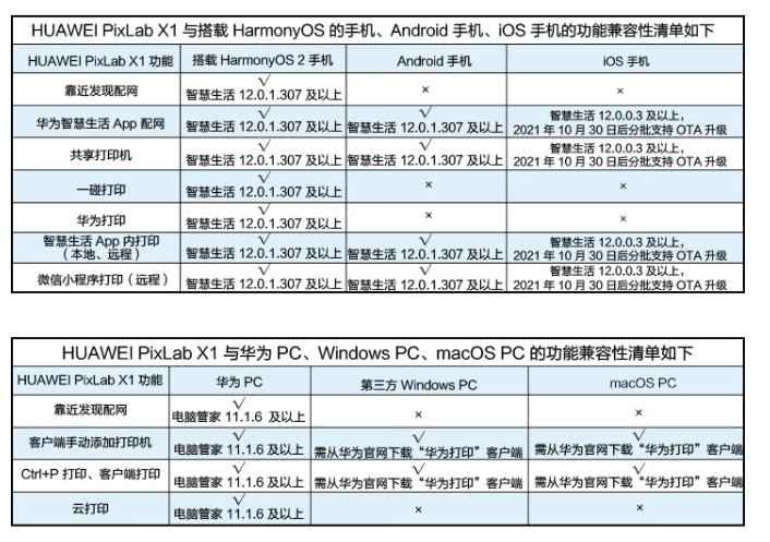 IT之家附华为 PixLab X1 的设备兼容性: