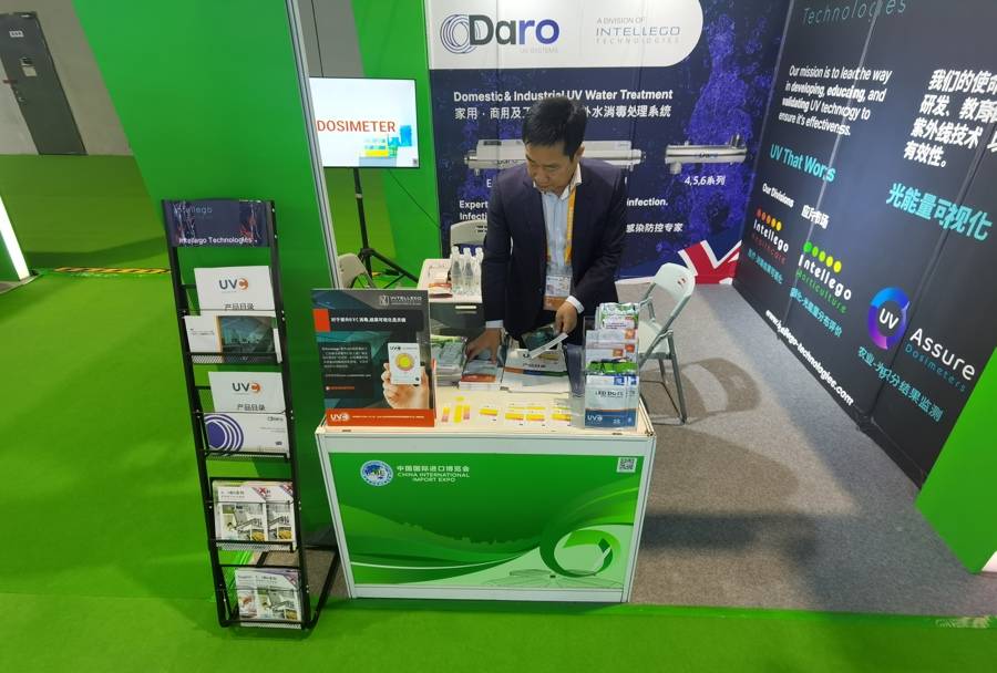 首次参加进博会的易得量生物科技的多款展品都得到了高度关注,尤其是其短波紫外线剂量测试卡,能直观显示相关消毒系统的紫外能量输出、消毒性能并验证消毒结果,受到许多专业观众和化妆品等领域参展商的青睐。