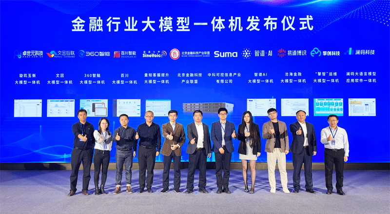 会上,中科可控联合卓世科技、文因互联、360集团、百川智能、捷通华声、智谱AI、易道博识、擎创科技、澜码信息等9大厂商,发布了9款金融行业大模型一体机,为金融科技领域发展提供了解决方案与技术支持。