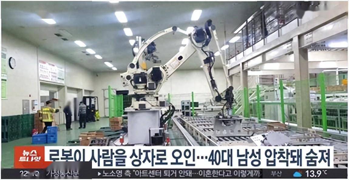 这不是韩国首起工业机器人误伤工人的案例。今年3月,一名50多岁的韩国男子在一家汽车零部件制造厂工作时被机器人困住并受重伤。