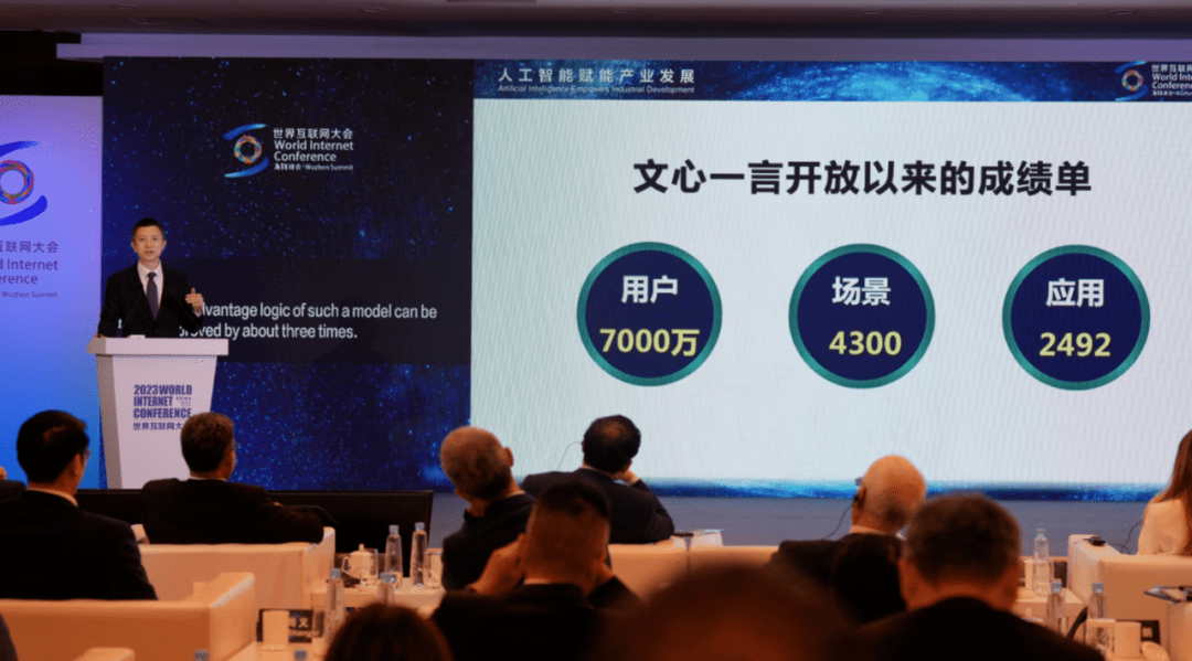 乌镇峰会走过的十年,正值数字经济腾飞的十年。十年间世事变迁,斗转星移。参与乌镇峰会的数字经济企业从2014年的12家增加到2023年的过千家,互联网行业格局早已是沧海桑田,层出不穷的新技术彻底改变了人们的生活乃至世界的面貌,数字经济重心已从“在线经济”全面转移到“智能经济”。作为乌镇峰会十年来的重要参与者与亲历者,置身数字经济中心的百度已从互联网企业蜕变成AI公司,成为中国AI产业的扛旗者。