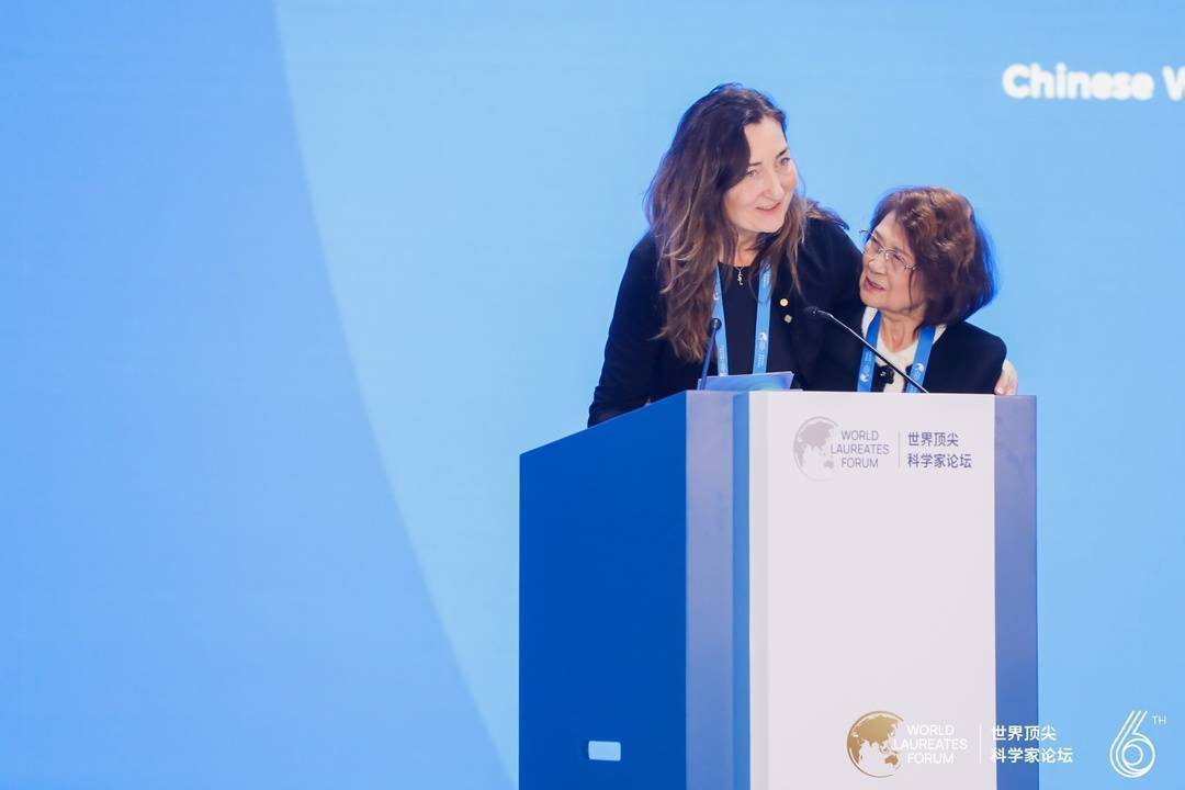 还有一位美丽的女孩,她被匡廷云的演讲深深打动,合影的时候,一直默默拭泪,她是复旦大学2021级药学院本科生许兢菁,也是顶科论坛的志愿者。 许兢菁告诉封面新闻记者:“我认为匡院士身上散发着一种超越性别的精神,不论是对于科研的热爱与坚持,还是面对癌症时的乐观与坚强,或者仅仅是因为她坚持在台上完成了这二十分钟的演讲,都足以让大家感动、敬佩和景仰。这一切,又因为匡院士是一位卓越的女性科学家而更让人动容,当她和梅-布莱特·莫索尔教授握手与拥抱时,我又感受到这是一份超越国界、超越年龄的来自女性的强大力量,这股强大的精神力量让我在那一刻非常受到触动,所以没有控制住自己就流下了泪水。最后找匡院士合照是希望留存下这一刻的感动,之后看到相片也能时常想起这份独属于女性的精神力量。”