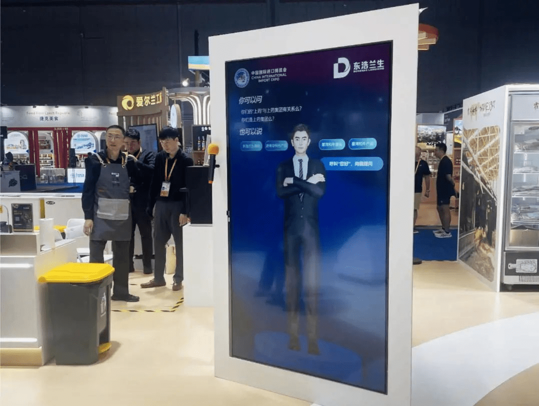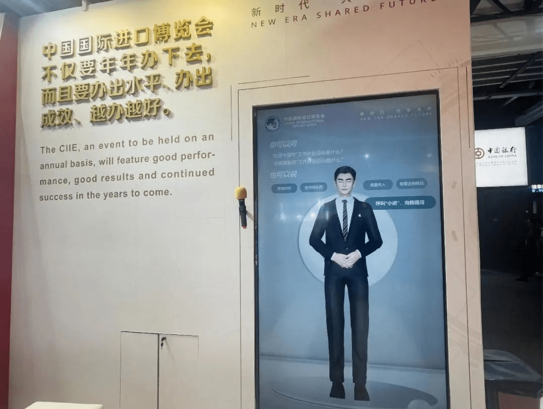 Q:此次进博会上,你们为党群服务站、FSG 展台、东浩兰生 Excel by DLG 展台等三大展台提供数字人服务,具体是如何应用的?