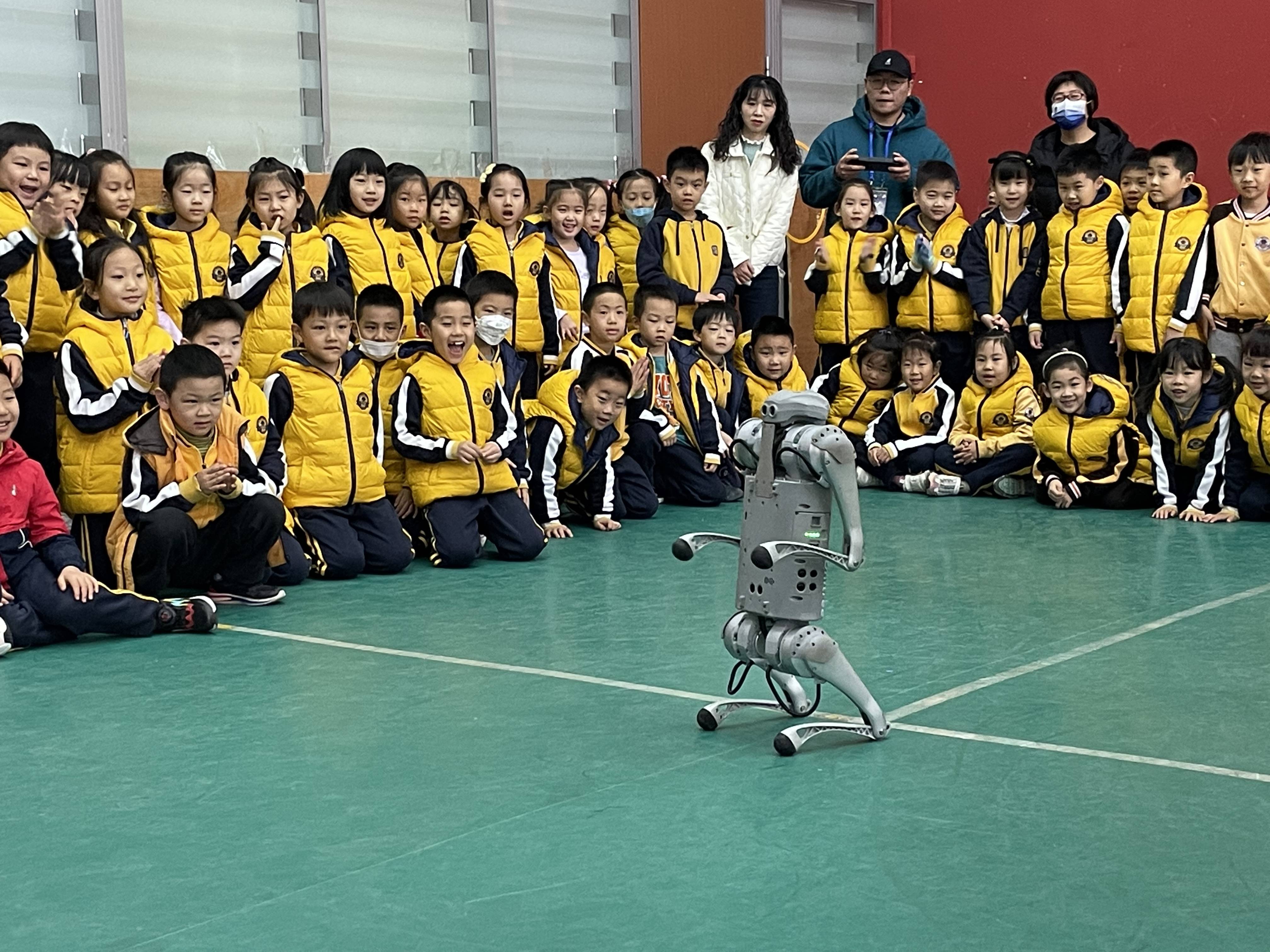 “无人机加油!”11月10日,北京市丰台区怡海小学篮球馆内,一架无人机腾空而起,平稳而精准地依次穿过半空中三个直径约30cm的圆环,引起周围孩子们此起彼伏的惊叹声。接着,智能机器狗迈着“小碎步”上场,在跟四周的孩子们“鞠躬”互动后,扭动四肢跳起舞来,现场一片欢呼沸腾。