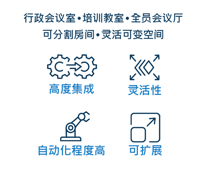 随着办公环境向混合方式转变,很多公司开始投资并打造新的办公空间,增加了以团队为中心的互动与创新的功能,以及大型聚会空间用来举办客户活动和内部团建等。传统的小型、中型和大型会议室空间无法在混合办公环境中提供高效、公平和吸引人的使用体验。公司需要创造一个为所有会议参与者提供更好体验和更高使用价值的环境,或称之为“高规格空间”。
