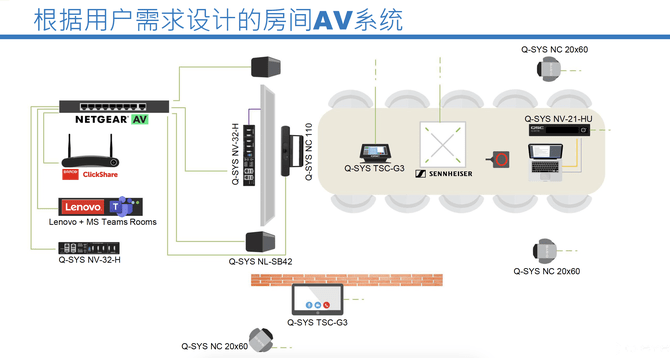 现场演示高度集成的智能会议解决方案使用了Q-SYS NV-32H