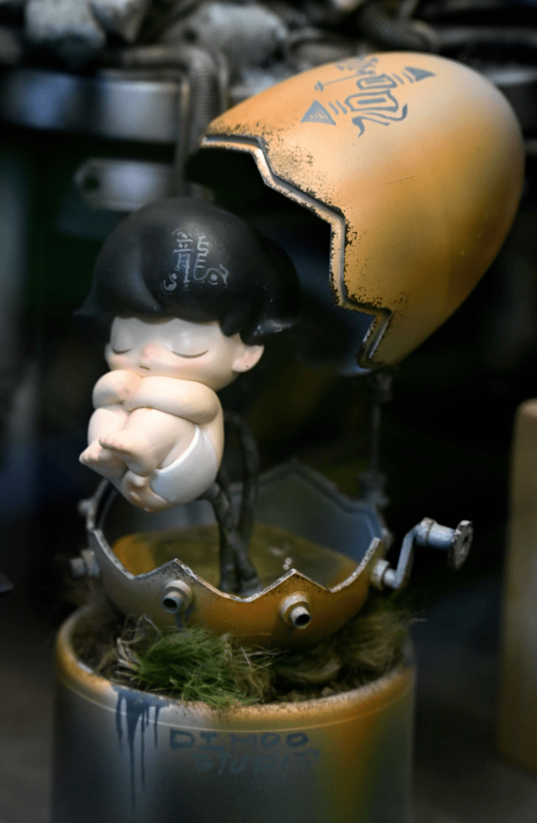 荒凉废土之地上,一个异形机甲机器人矗立其中,全身呈金属质感,让人不禁联想到科幻电影里的机械战士。而这,只是黄瑞杰众多模型中的冰山一角。