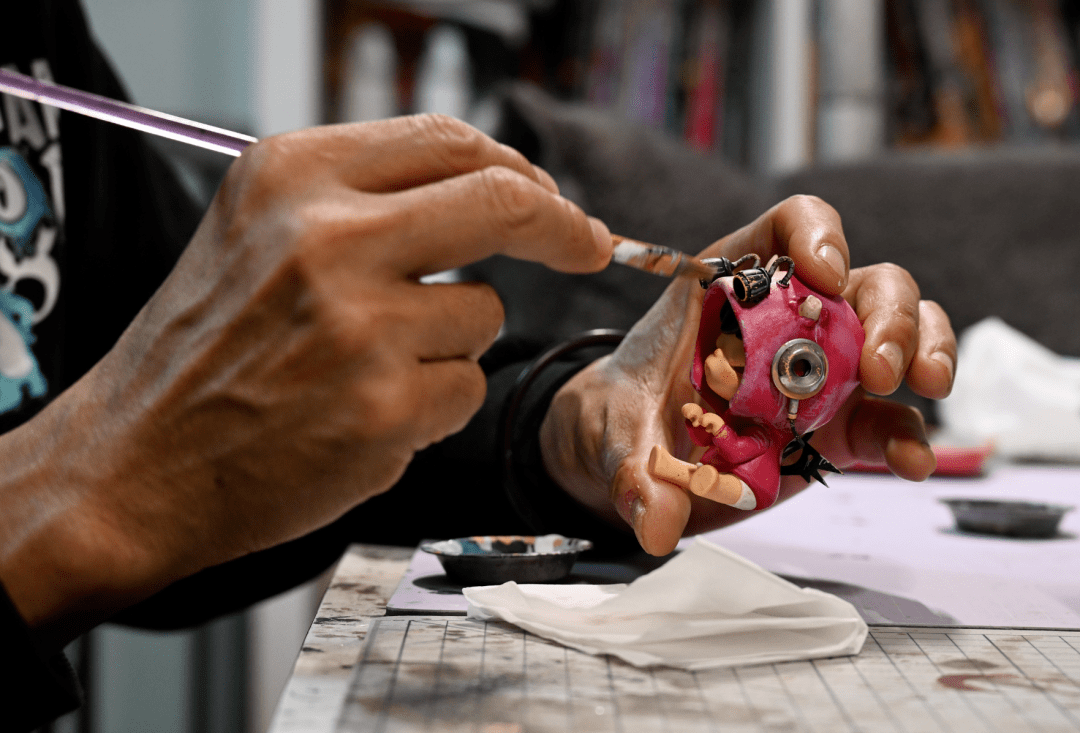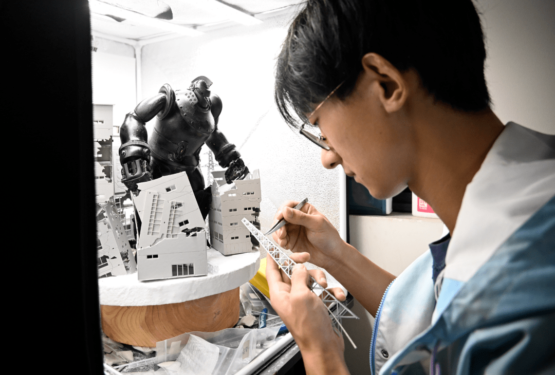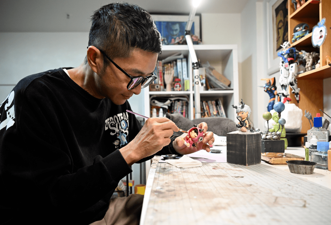 ▲黄瑞杰正在对手办进行加工涂色