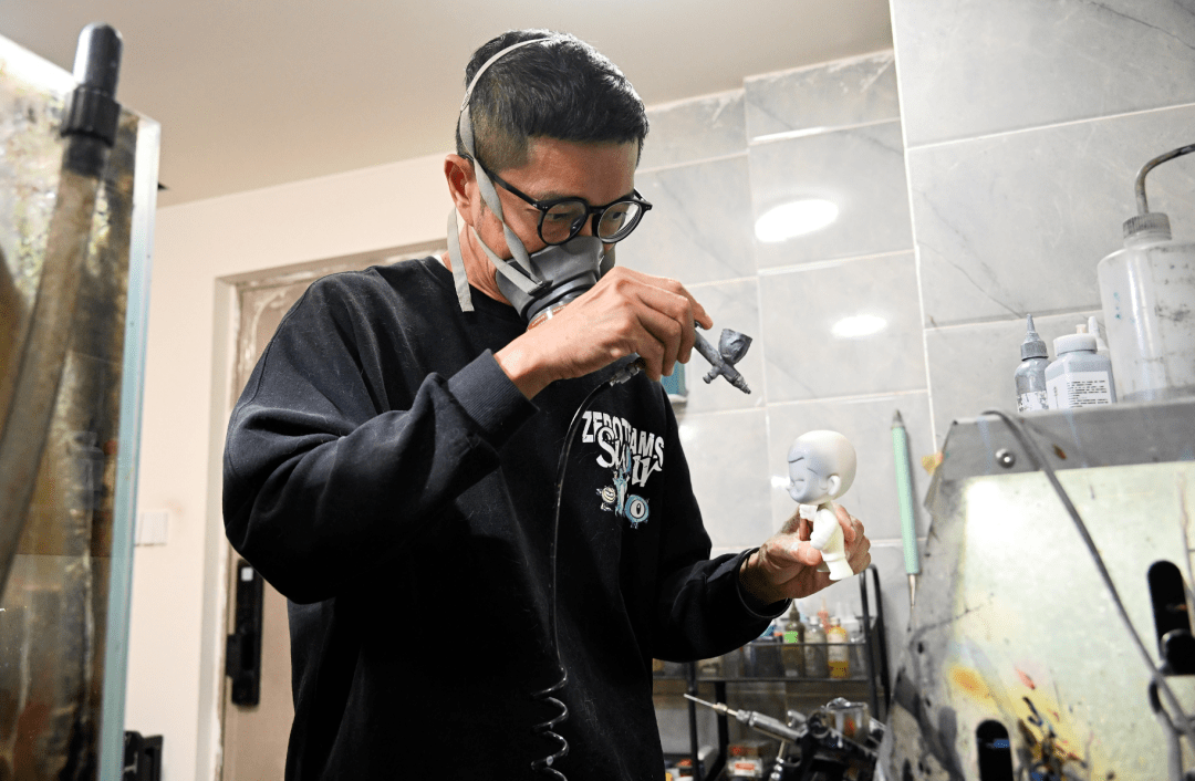 ▲黄瑞杰正在对手办进行加工喷漆