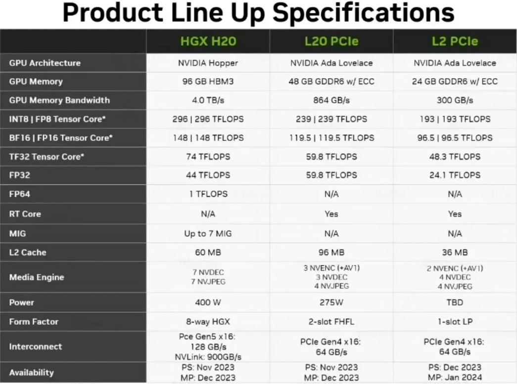 据《科创板日报》报道,产业链人士称英伟达现已开发出针对中国区的最新改良版 AI 芯片:HGX H20、L20 PCle 和 L2 PCle。