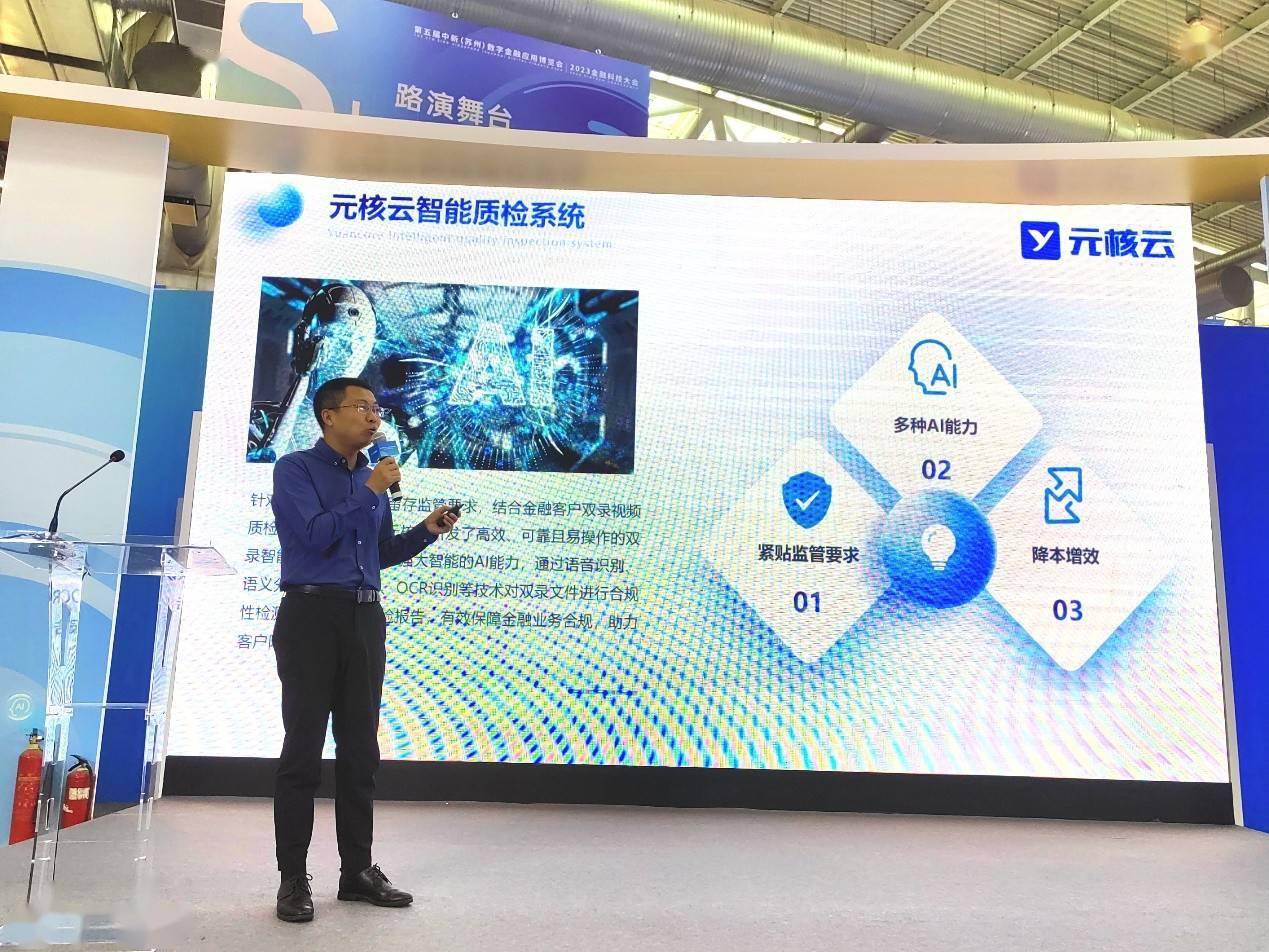 11月初,第五届中新(苏州)数字金融应用博览会|2023金融科技大会在苏州国际博览中心举办,围绕金融科技发展热点领域及金融行业信息科技领域重点工作,分享优秀实践经验,探讨数字化转型路径与未来发展趋势。元核云携最新研发产品——元核云智能质检系统亮相此次大会,并在会上发表重要演讲,展示了AI技术在金融视频质检场景的全新应用成果。