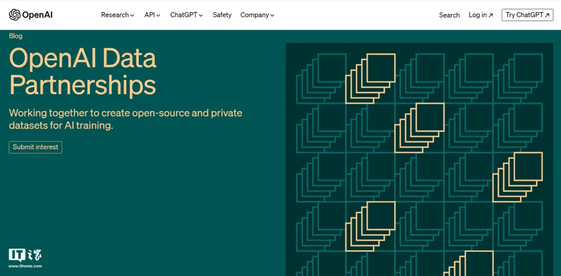 11 月 10 日消息,OpenAI 发文宣布,将与组织合作生成用于训练 AI 模型的公共 / 私有数据集,数据合作伙伴关系旨在“让更多组织能够帮助引导 AI 的未来”并“从更有用的模型中受益”。