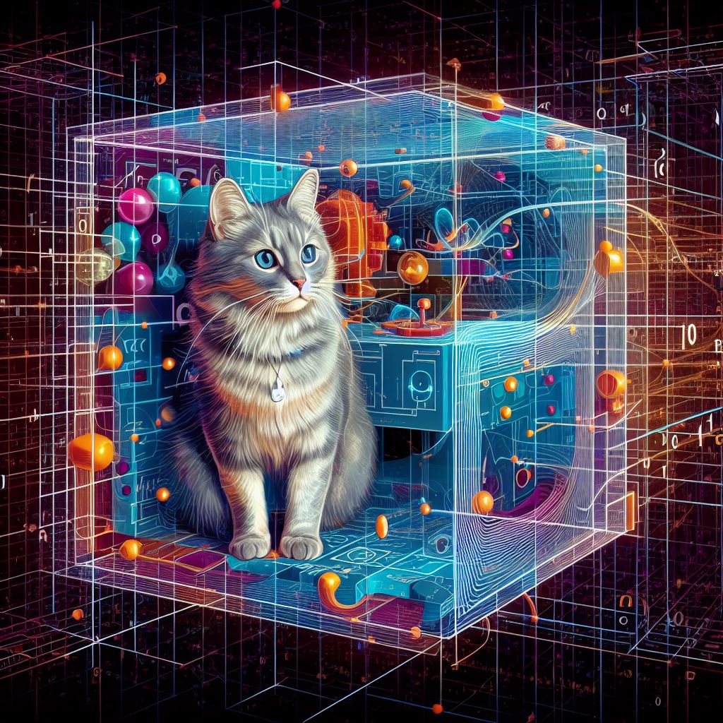 在量子力学的严格解读中,猫在这个阶段既不是活也不是死;它存在于活的和死的量子叠加态中。只有当我们打开盒子时,我们才能确定,这也是打开盒子的行为,让这种叠加崩溃,猫以一种或另一种状态存在。