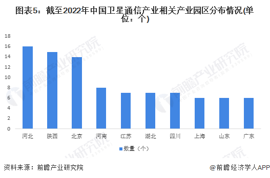 目前,我国卫星通信产业相关的产业园区共有133个,多个省市均有分布,其中河北、陕西、北京三个省市分布数量最多,分别达到16、15、14个。河南、江苏、湖北、四川等地卫星产业园区数量均在6个以上。河北卫星产业相关的产业园区有固安卫星导航产业园、北斗卫星大数据产业园、中国航天材料产业基地、航空航天产业基地、怀来航空航天产业园等。