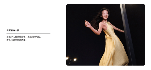 影像是华为nova 11 SE的亮点配置之一,整体实力非常在线。先看参数,华为nova 11 SE前置搭载3200万像素高清质感人像,支持美肤人像自拍、逆光HDR、超级夜景模式,用它拍出来的人像照片非常清晰,美颜自然贴服,就算在夜晚拍摄,比如夜晚聚餐,或者是深夜压马路,成片效果也同样可观。