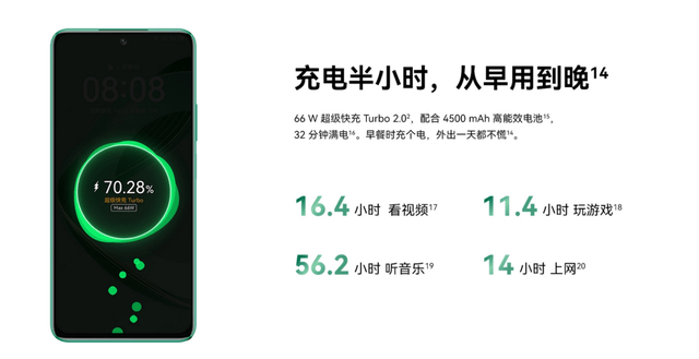 续航方面,华为nova 11 SE的表现也让人倍感惊喜,其配备一块4500mAh大容量电池,应对一天电量需求绰绰有余。快充上,它加持有66W华为超级快充Turbo 2.0,只需32分钟就能将手机充至满电,基本不会因为充电而耽误太多时间。