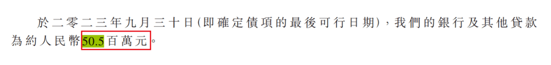 除此之外,集团还面临着高额的负债。于2023年9月30日,公司的银行及其他贷款约5050万元。