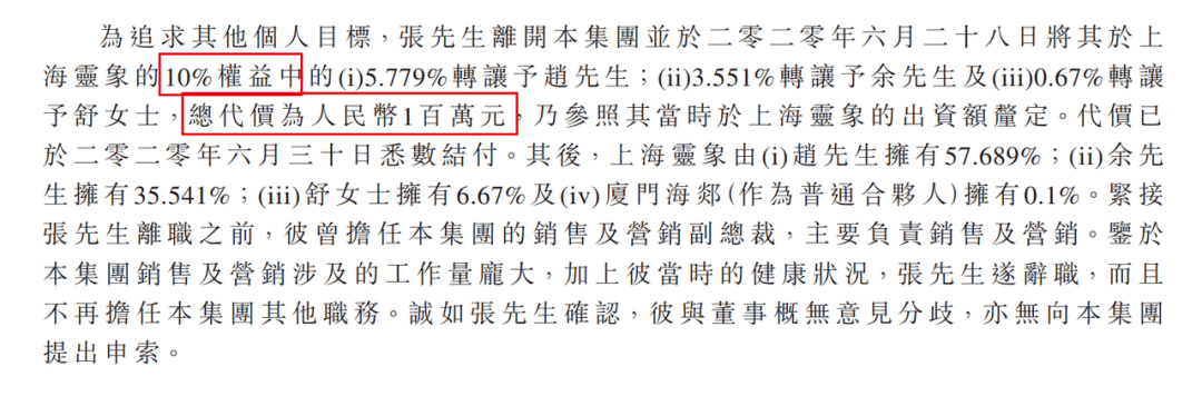 仅仅4年后,张宇于2020年6月将其股份转让予赵利兵、余灿良和舒清后退出,套现100万元离场。