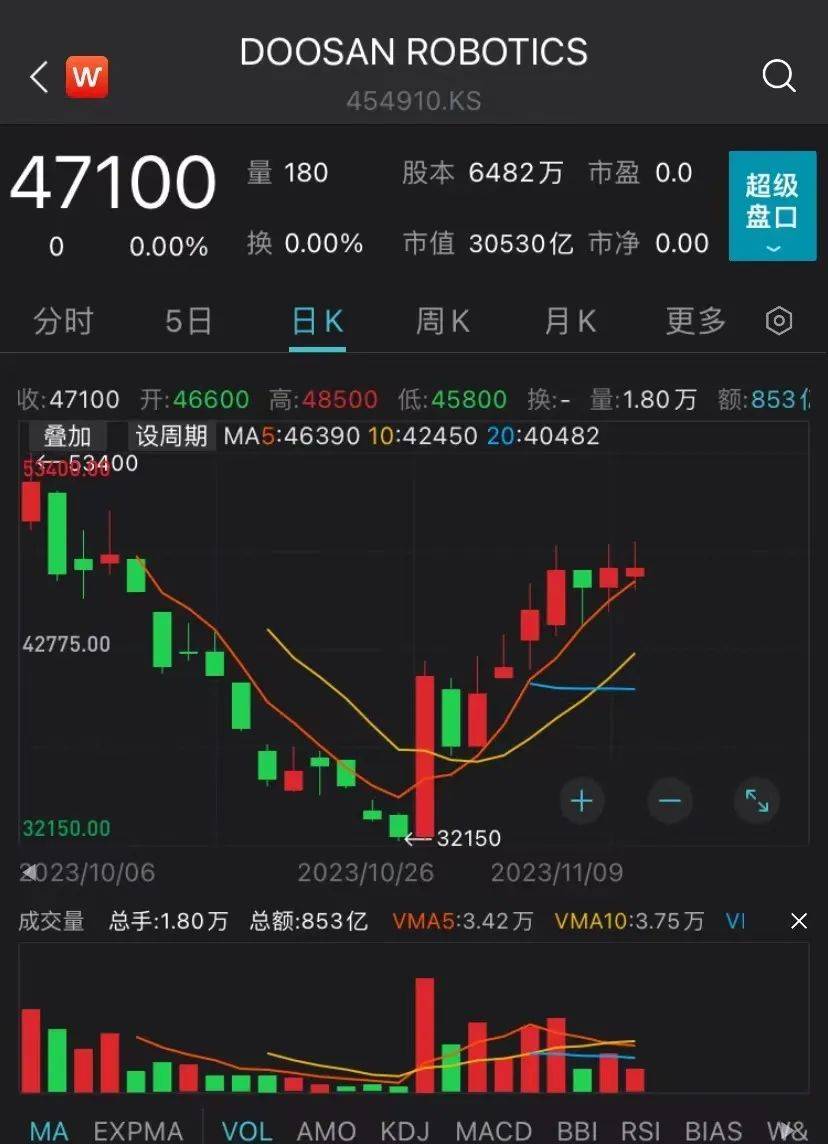 机器人制造商也是韩国今年最受追捧的股票类别之一。就在10月5日,韩国斗山机器人公司(Doosan Robotics)在首尔市场上市的首日,股价便几乎翻倍。此前该公司宣布通过首次公开募股募资4210亿韩元(约合3.1亿美元),为韩国市场上年内迄今规模最大的IPO。