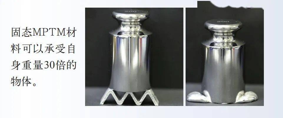 MPTM中含金属镓,它在温度超过29.7℃时就会变为液体。MPTM中还含有磁性颗粒,它们在磁场作用下会升温,固体镓就会熔化。自然冷却后,材料又会变成固体。磁性颗粒不仅能使材料升温,还能使其在磁场控制下移动。