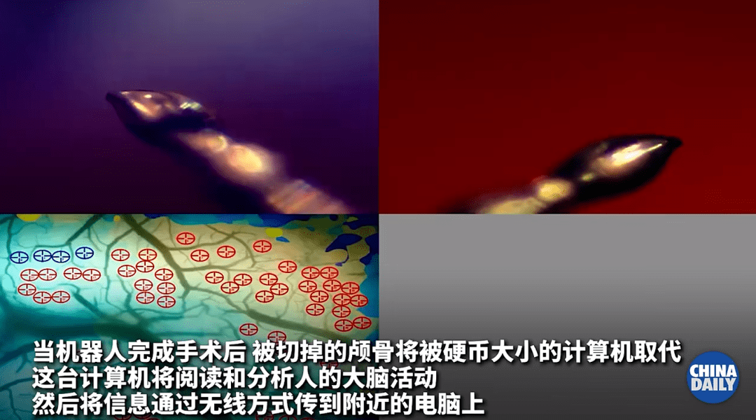只有切除一块头骨后,机器人才能将一系列电极和超细电线插入他们的大脑中。