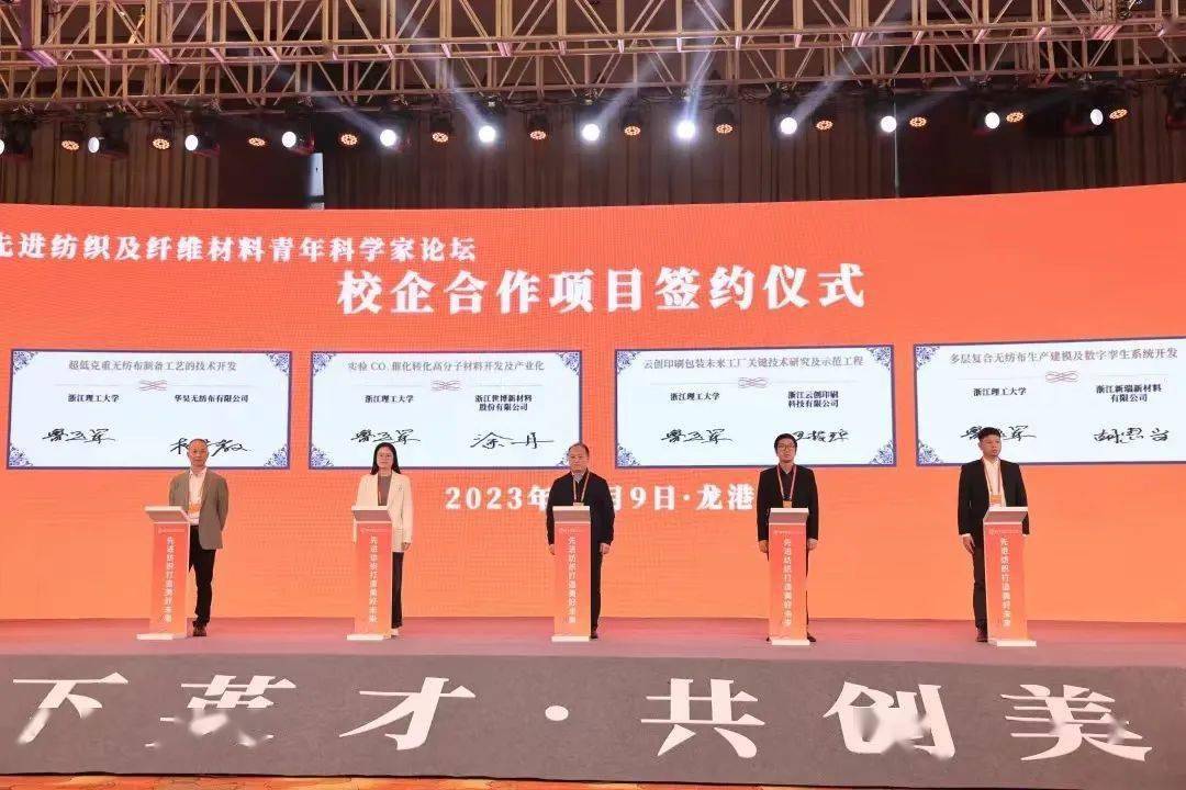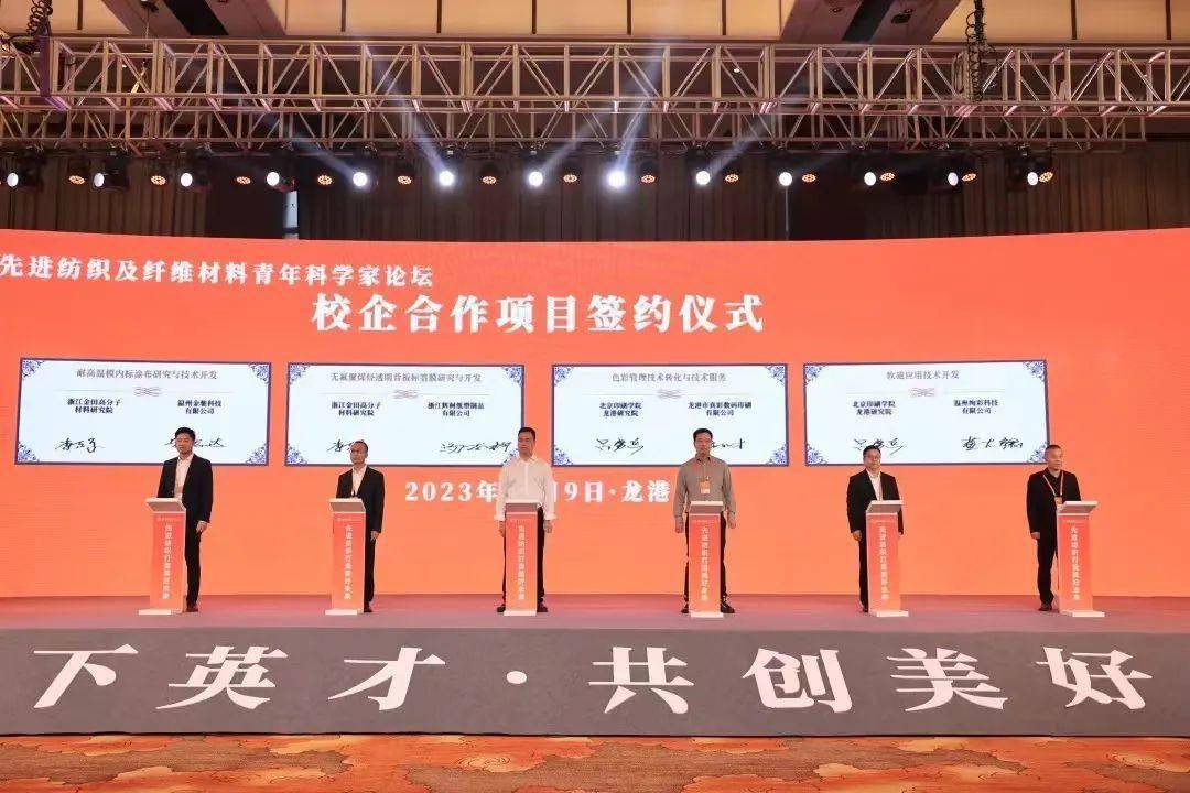 活动现场还举办了校企合作项目、4家院企合作项目、人才合作等签约仪式。随后,中国纺织工程学会理事长伏广伟与龙港市副市长黄振国进行了中国纺织工程学会龙港服务站签约仪式。