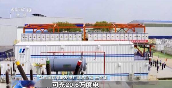 华电国际莱城发电厂副总经理 王金刚:项目利用高压级联技术将多个电池组串联起来,直接高压输出,转换效率超过90%,还利用集中液冷技术高效解决电池充放电时发热问题,总容量达206兆瓦时,一次可充20.6万度电。
