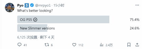 然而,这款新机的外观似乎依然并未得到广大玩家的认可。有博主在评论区发起投票,超七成玩家认为原版PS5的外观要更好看。