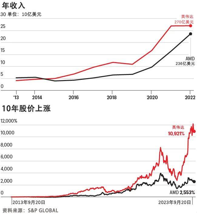 尽管苏姿丰最初拯救 AMD 的策略包括将产品线从个人电脑市场扩展到游戏和高性能计算等领域,但公司与英特尔的竞争依旧需要投入大量精力。这也许是不可避免的,但分析人士称,这造就了英伟达如今的优势地位。