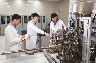 鞍钢集团海工钢科研团队成员正在讨论分析新开发的产品显微组织。 图片由鞍钢集团提供