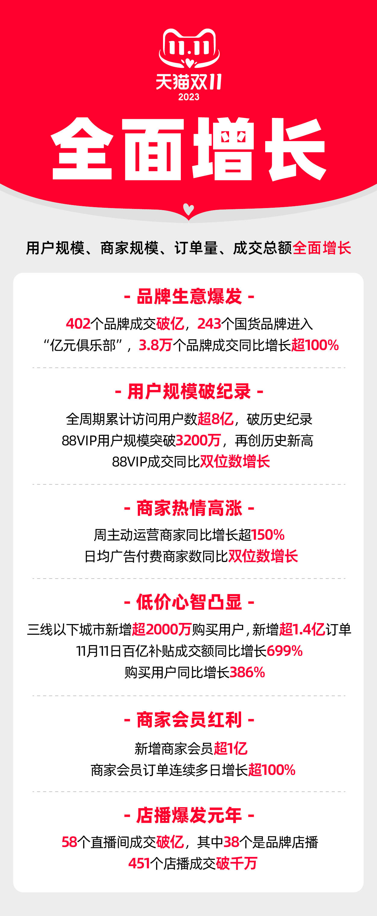 价格力、商家会员、店铺直播三大增长新引擎 2023天猫双11全面增长