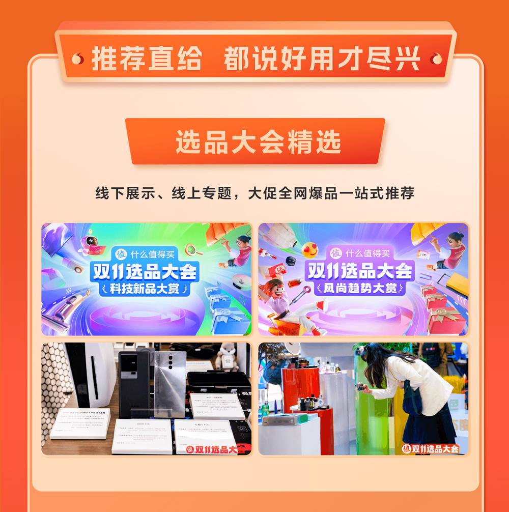 作为供需两端的高效连接者,什么值得买认为,当下消费者需要的不仅是有吸引力的价格,更是流畅的消费体验。因此,整个大促期间什么值得买主打直给建议,节省用户决策成本。通过“双11选品大会”,什么值得买挑选行业新品与大促爆品现场展出,并通过编辑现场交流,达人、用户亲身体验,将相应内容汇总成榜单在平台发布,为大促中的消费者提供更直给的决策建议。在电商福利外,平台更精选具有更高用户呼声的商品,加码回馈消费者,推出“值享百人团”专项补贴,双11期间累计吸引25000多名用户参与,创造GMV超2.1亿元。