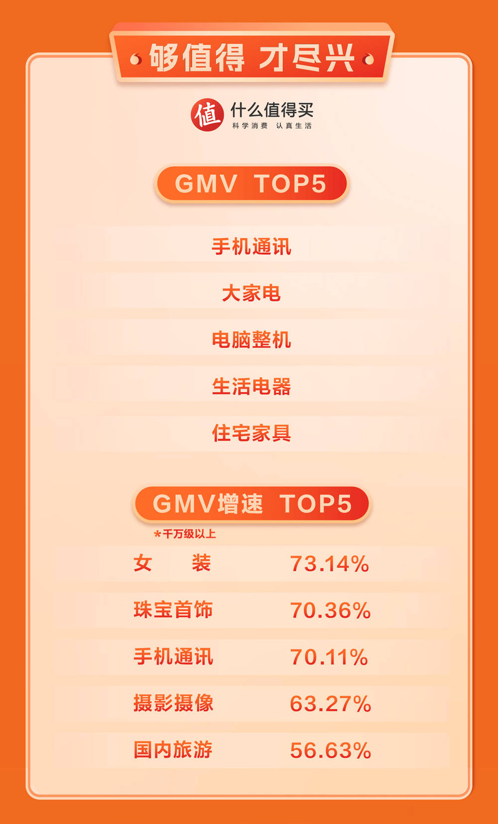 战报显示,什么值得买平台GMV前五大品类分别为手机通讯、大家电、电脑整机、生活电器、住宅家具,“大促买大件”仍然是突出的消费心智,“品质升级”更是大件换新的核心考量。如自清洁、超薄嵌入式、大风量等家电功能走红,套系化、智能化家居成为趋势。