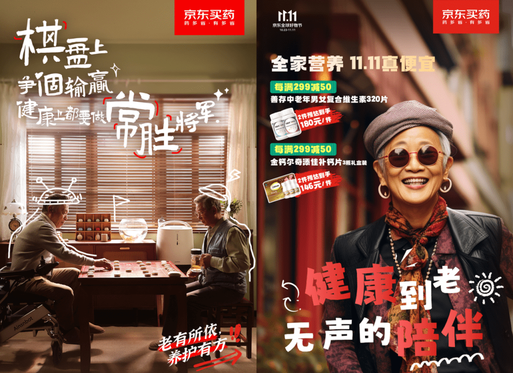 银发族的身体健康也备受关注。11.11期间,京东健康中老年体检套餐成交额同比增长3倍,其中含有CT项目的体检套餐更受欢迎;京东大药房慢病用药服务患者数同比增长超5倍,高血压、糖尿病等慢病用药品类超百个品牌成交额同比增长翻倍;有助于调节老年人“三高”问题的保健品高速增长,辅酶Q10品类成交额同比增长110%。老年群体居家的日常健康监测也成越来越重要,11.11期间,助听器、护理床、助行器品类成交额同比增长均超100%。