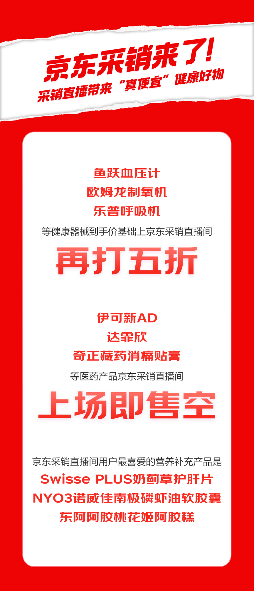 另外值得一提的是,今年京东采销直播成功“破圈”。京东健康的采销人员也精心准备了多场直播,筛选让利数千万元的健康商品及服务,给用户带来“真5折、真便宜”的健康福利。