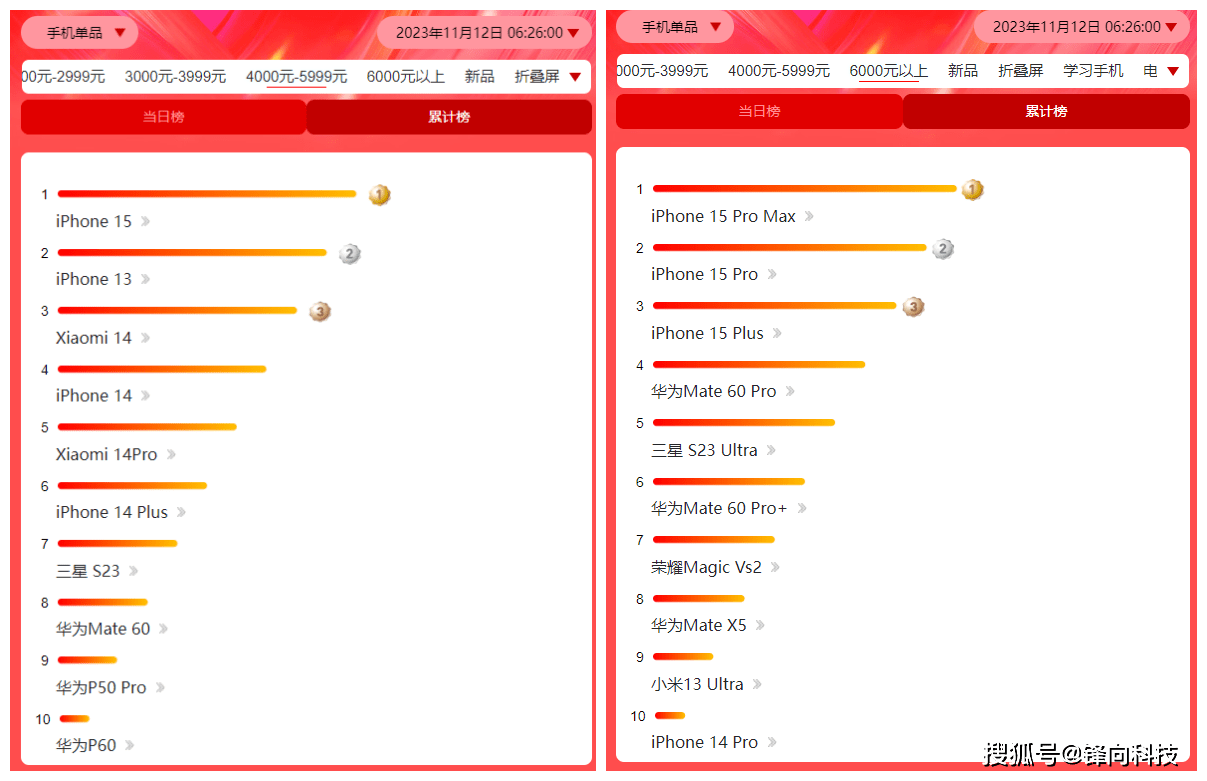 另外我们通过这个榜单也发现一个非常有让人难以理解的现象,那就是OPPO与vivo这两个品牌的机型全军覆没,没有一款机型进入这两个榜单之中。要知道OPPO与vivo在这个档次并不是没有机型在售,vivo X90系列,vivo X Fold系列、OPPOFind X6系列,OPPO Find N3系列都是这个档次的机型。遗憾的前十之中一款也看不到……