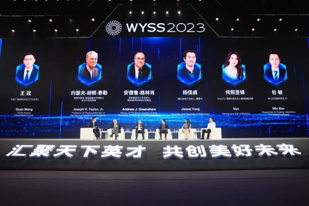 “创未来之路”环节,诺贝尔物理学奖得主康斯坦丁·诺沃肖洛夫、楼雄文、华大集团首席执行官尹烨作主旨报告。诺贝尔物理学奖得主约瑟夫·胡顿·泰勒,英国皇家艺术学会院士安德鲁·格林肖,与企业家、青年学者代表,以脑机接口领域为例,开展医学界与产业界的访谈讨论。诺贝尔化学奖得主哈特穆特·米歇尔,澳大利亚工程院院士窦世学,与来自国际科学理事会、中国科学技术大学、西湖大学、清华大学的青年专家学者,围绕“青年与可持续发展”进行对话。