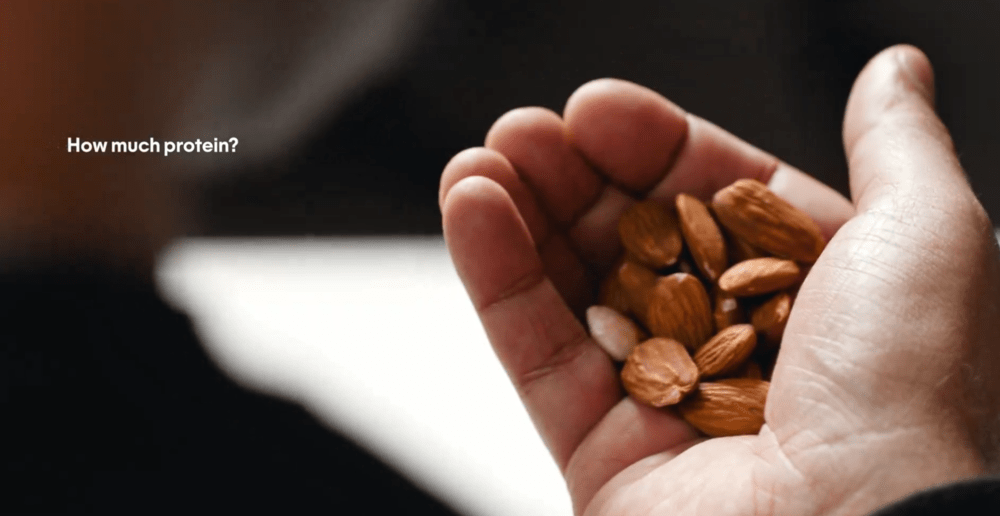 网络资料显示,这种杏仁的重量平均每颗 1 克左右,蛋白质含量约占其中的五分之一。也就是说,15g 蛋白质,约等于三颗鸡蛋的蛋白质含量,大概需要 75 颗杏仁提供,伊姆兰的小手里显然没有这么多。